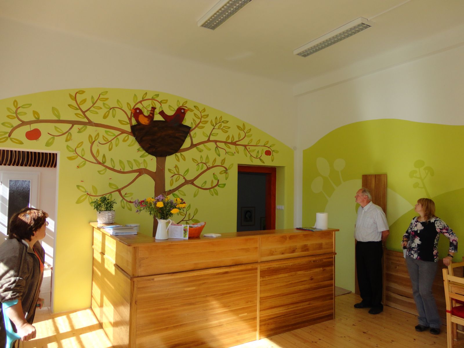 Činnosti na projektu: odstranění maleb, přeštukování, malba stropu a stěn, demontáž plátna, renovace podlahy, dveří a tyče na záclony, kontrola a zvýšení kapacity elektroinstalací, zavedení instalací pro kuchyňku, renovace vstupních dveří a oken WC, celková renovace WC, odstranění maleb, přeštukování a malba stěn šatny, renovace podlahy a dveří šatny